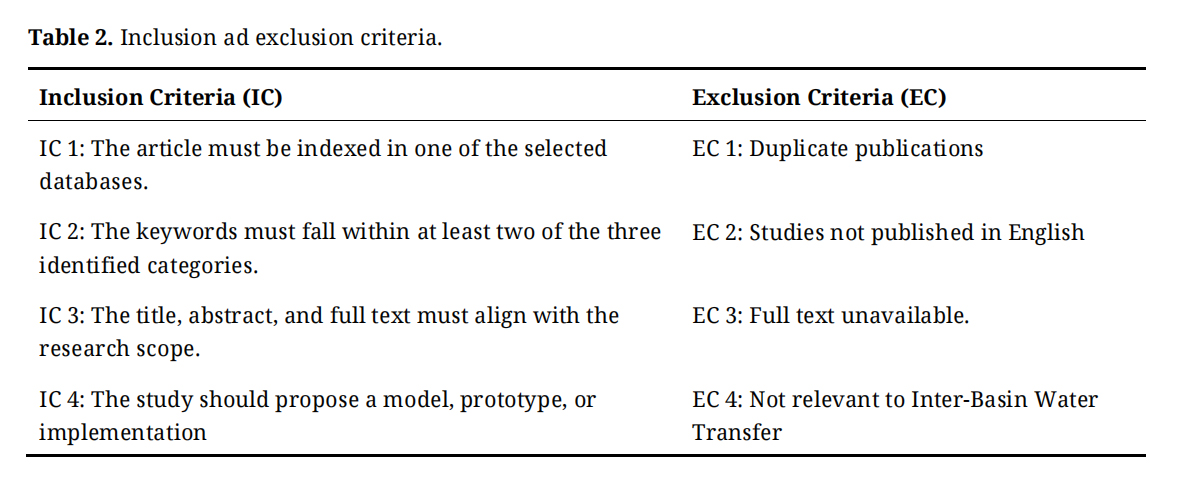 To achieve the article selection phase, we implemented a rigorous screening process based on predefined inclusion criteria (IC) and exclusion criteria (EC). Table 2 presents the IC and EC applied in this study.