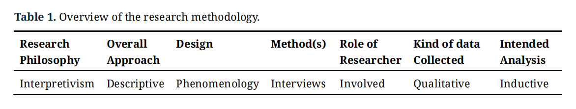 Therefore, this study opted for a descriptive method to provide a comprehensive account of the events experienced by individuals or groups within Invercargill’s food and beverage sector, specifically from the perspectives of managers, chefs, and servers. The choice of this method was deliberate and based on careful consideration. A well-structured, meticulously designed research framework is crucial for guiding the study’s trajectory and offering a systematic path throughout the research process [62]. By using a descriptive approach, the study aims to deliver an all-inclusive account of these experiences, ensuring thorough and detailed insights into the sector’s dynamics [62]. As illustrated in Table 1, a detailed overview of the research methodology is presented.