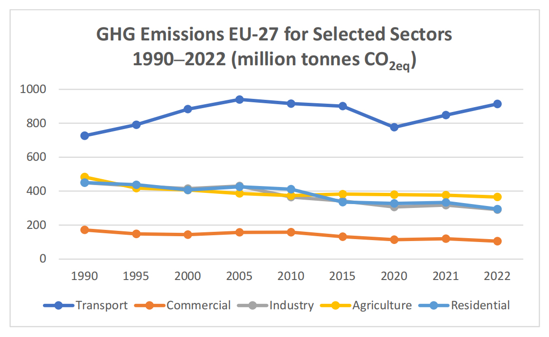 Figure 1 demonstrates that even regions that are industrially advanced like the European Union are ways off from reaching this arduous objective, and that the transport sector is returning to the GHG emission path before the Covid-19 pandemics. The same holds for other parts of the world where the transport sector can be considered the biggest challenge for reducing GHG. The world community will have to choose among two options: