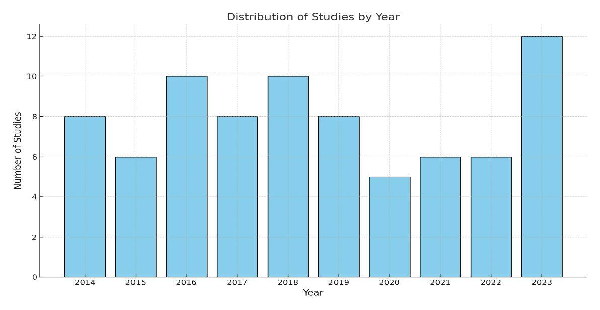 Descriptive AnalysisOur screening results show a steady increase in the number of papers focusing on CB and CSR over the years. To analyze these trends, we categorized the studies by their publication year and calculated the annual publication percentages. Figure 2 shows the trends of the studies analyzed with evidence of the annual trends.