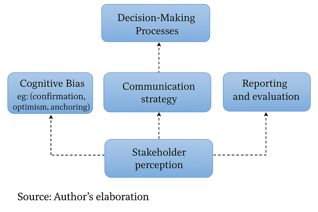 Illusion of Transparency: Organizations often misjudge how well stakeholders grasp their CSR messages. As noted by [40], this attitude can lead to misunderstandings and loss of trust. In support of this, research by [69] highlights that stakeholders' skepticism increases whenever they perceive unclear communication in CSR. To resolve this, companies must adopt more effective communication with stakeholders, ensuring their messages are clear. These findings highlight the importance for organizations to create communication strategies that take cognitive biases into account. It is in fact appropriate to focus on transparency and clarity, so that companies can improve the work of stakeholders to achieve a relationship of trust that brings positive results to all interested parties.