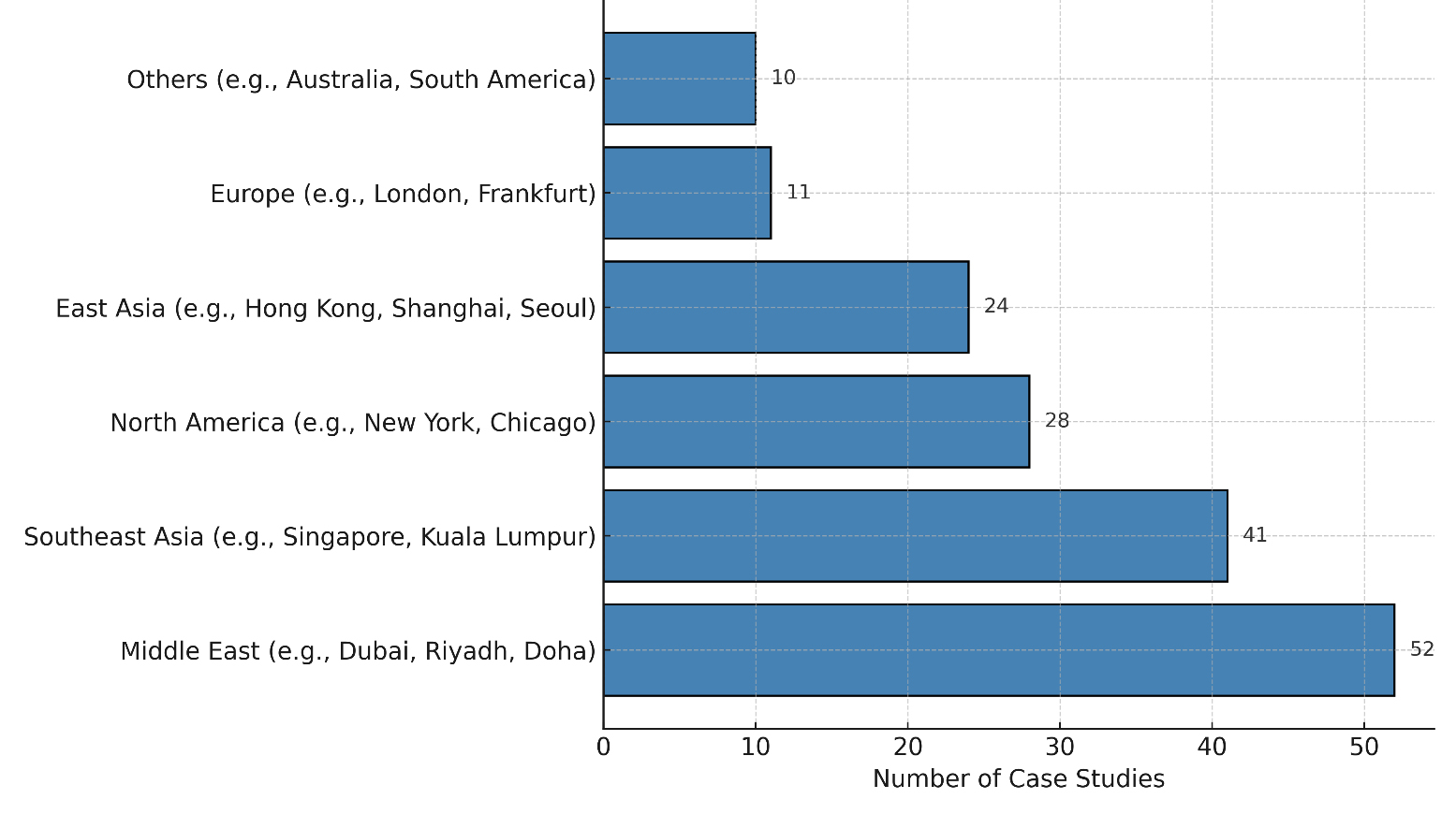 Figure 1. Regional distribution of tall and supertall buildings in the dataset (n = 166).