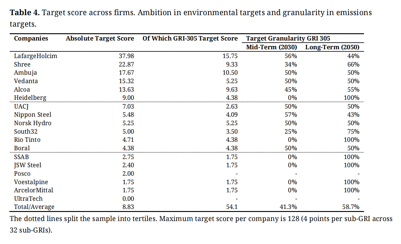 We choose the basic materials sector since it is responsible for 61.7% of all industrial emissions with no large-scale commercial operation using low-emission technologies to date [57]. The sector’s emission-intensive profile makes it less attractive for sustainable investment compared to more easily transitioning industries in the net zero emission race. Transition finance plays a critical role in supporting these sectors by providing capital to invest in cleaner technologies and reduce emissions [58], provided alignment with long-term sustainability. We examine three of the most polluting industries- global steel, cement, and aluminium. Petrochemicals, the third most emission-intensive industry, was excluded due to its heterogeneous production processes and products. To construct the sample, we applied criteria of representativeness and excellence, selecting listed companies that follow GRI guidelines and are classified as best-in-class by the Transition Pathway Initiative (TPI) at the end of 2020 [59]. Appendix A presents the companies analyzed and their main characteristics.
