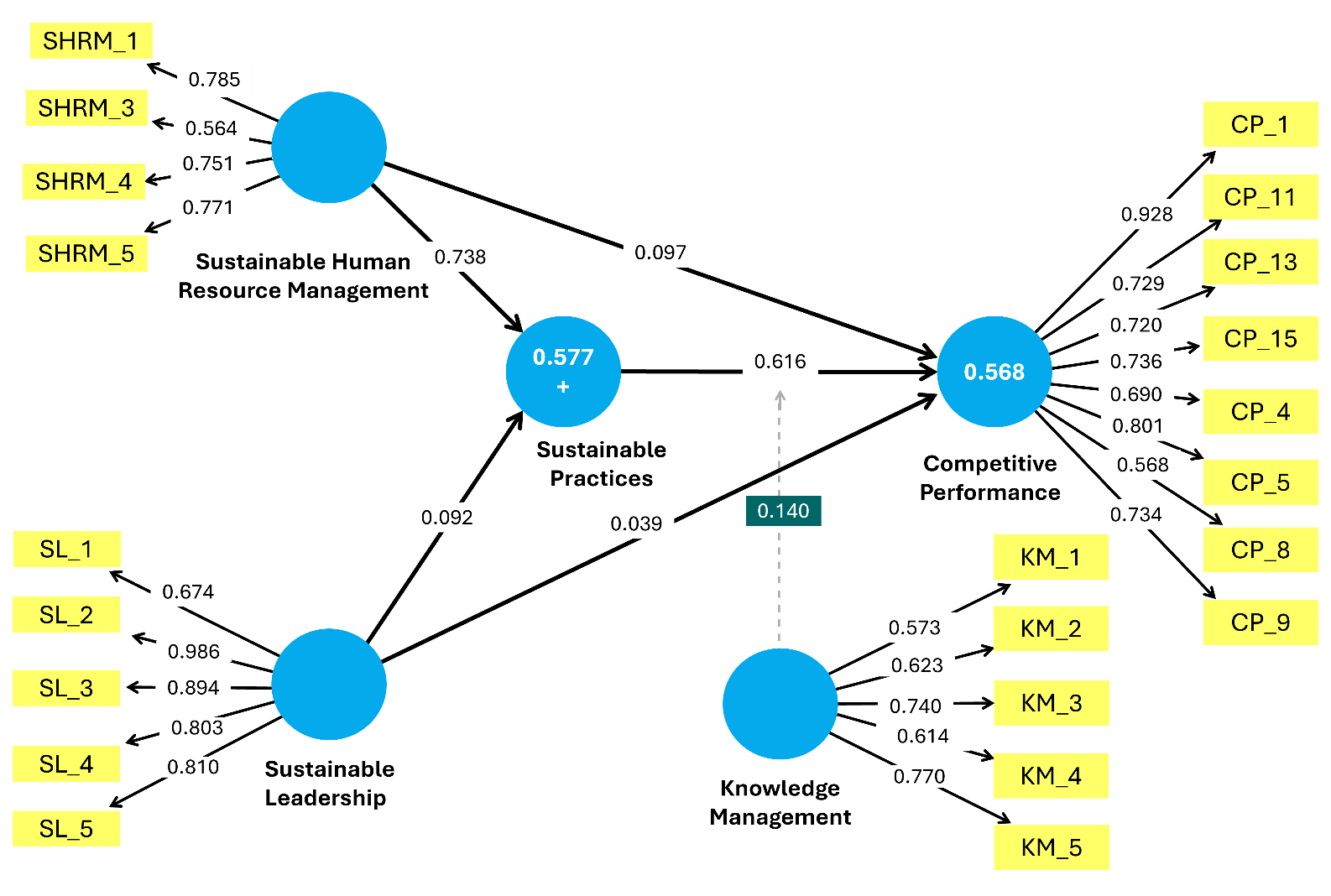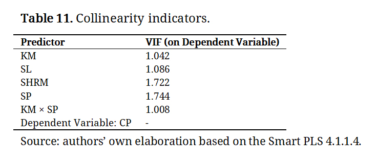 The literature also emphasises that integrating knowledge oriented towards SP requires leadership with a long-term vision and an organisational culture conducive to innovation [66]. From the standpoint of Dynamic Capabilities Theory, KM is understood as a capability that enables the integration, building, and reconfiguration of competences to respond swiftly to environmental challenges [67]. Consequently, KM not only drives innovation and CSR but may also play a moderating role in the relationship between SP and CP [68].