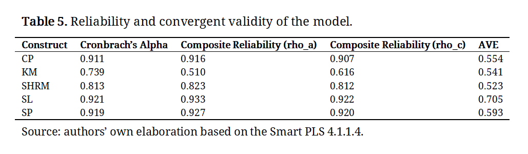 For SHRM, the scale employed was based on empirically validated instruments developed by [17,37] complemented by the conceptual foundations of sustainability in people management proposed by [18].