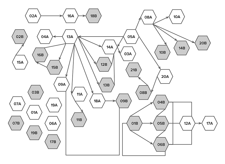 The first prototype was tested to 36 women and 4 men (age range: 60–82 years, mean: 64.49 years) with an average weight and height of 57.12 kg and 156.2 cm, respectively (range BMI 17–28.9, mean: 23.47). Clustered participants’ BMI for Asian people [35] were low to average body mass (<23.5), overweight (23.5–27.5), and obese (>27.5) represented by 21, 13, and 6 participants. A total of 35 and 5 participants resided with the children or family and alone, respectively. The participants were selecting the preferred time to increase the possibility of exercising before testing period (morning/code A or afternoon/code B). Meanwhile, recruitments were conducted by snowballing to increased togetherness in groups. Figure 4 shows participants networking, with arrows pointing from one referring to the other. The lines without arrows show both participants related to each other with two groups formed. However, a participant (4A) did not exercise for one consecutive week and was dropped out.