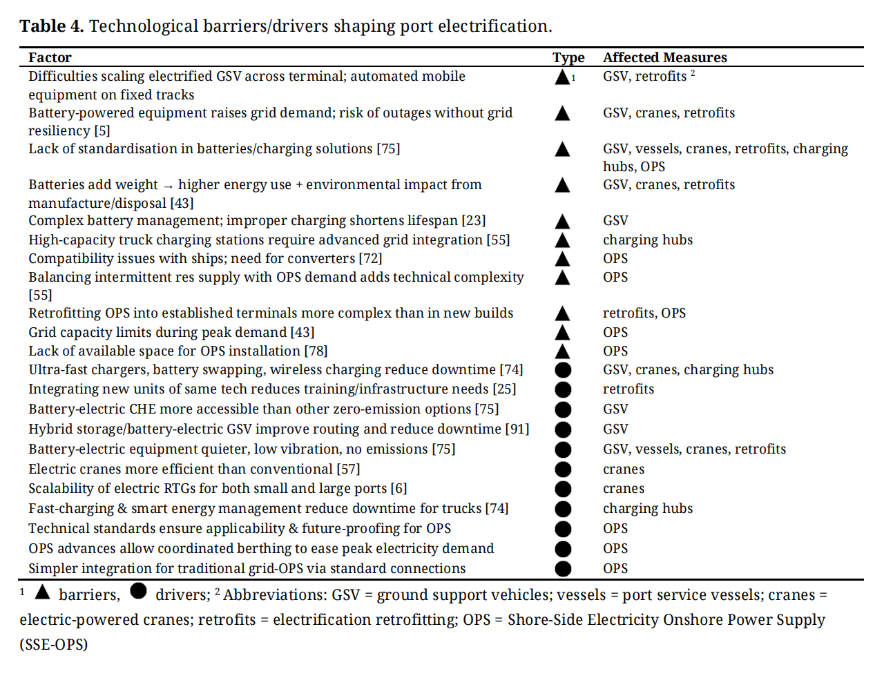 Table 2. Economic barriers/drivers shaping port electrification.