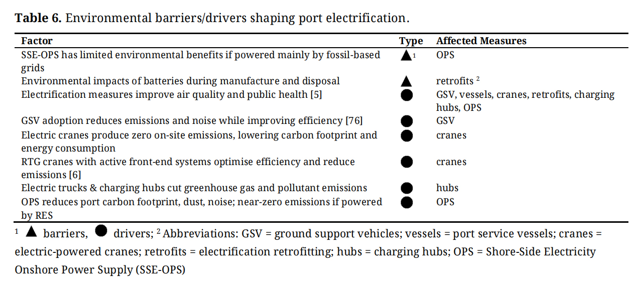 Overall, this methodology enables a multidimensional assessment of port electrification—evaluating both its systemic potential and the practical barriers that continue to shape its real-world application.