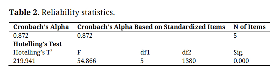 Table 2. Reliability statistics.