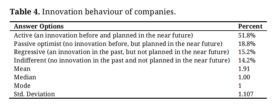 Table 4. Innovation behaviour of companies.
