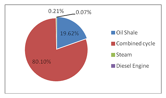Figure 7 shows the energy share percentage for each technology (Oil Shale, CC, Steam Cycle on gas, and DEs). It is clear that CC units contributed the most, covering 80.10% of the load, while oil shale contributed 19.62% as a must-run unit, STs contributed 0.21%, and DEs contributed 0.07%.